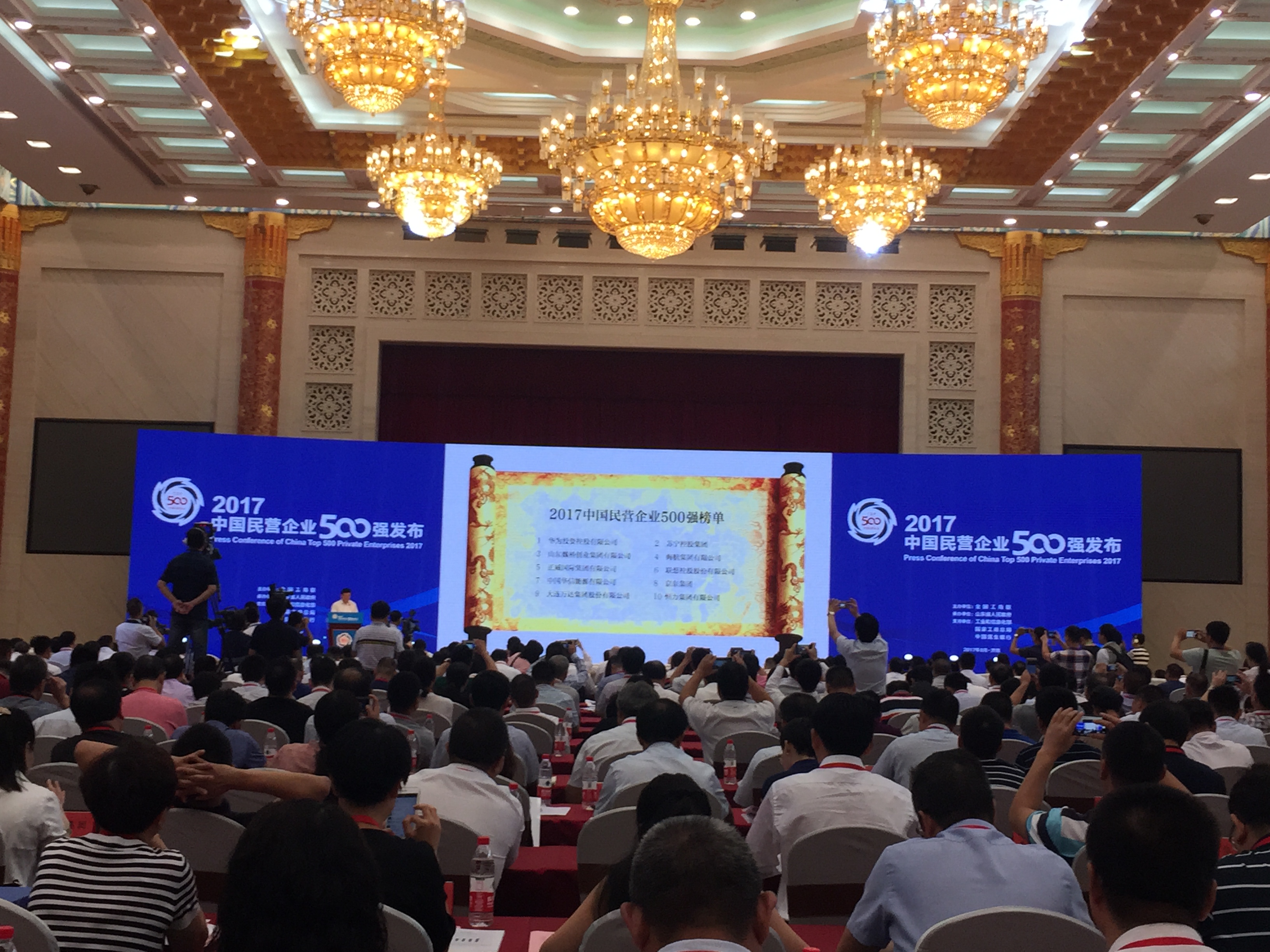 全国政协副主席、全国工商联主席王钦敏出席发布会并致辞,中央统战部副部长、全国工商联党组书记、常务副主席徐乐江发布2017中国民营企业500强、制造业500强、服务业100强榜单,全国工商联副主席黄荣发布2017中国民营企业500强分析报告,全国工商联党组副书记、副主席樊友山主持发布会。