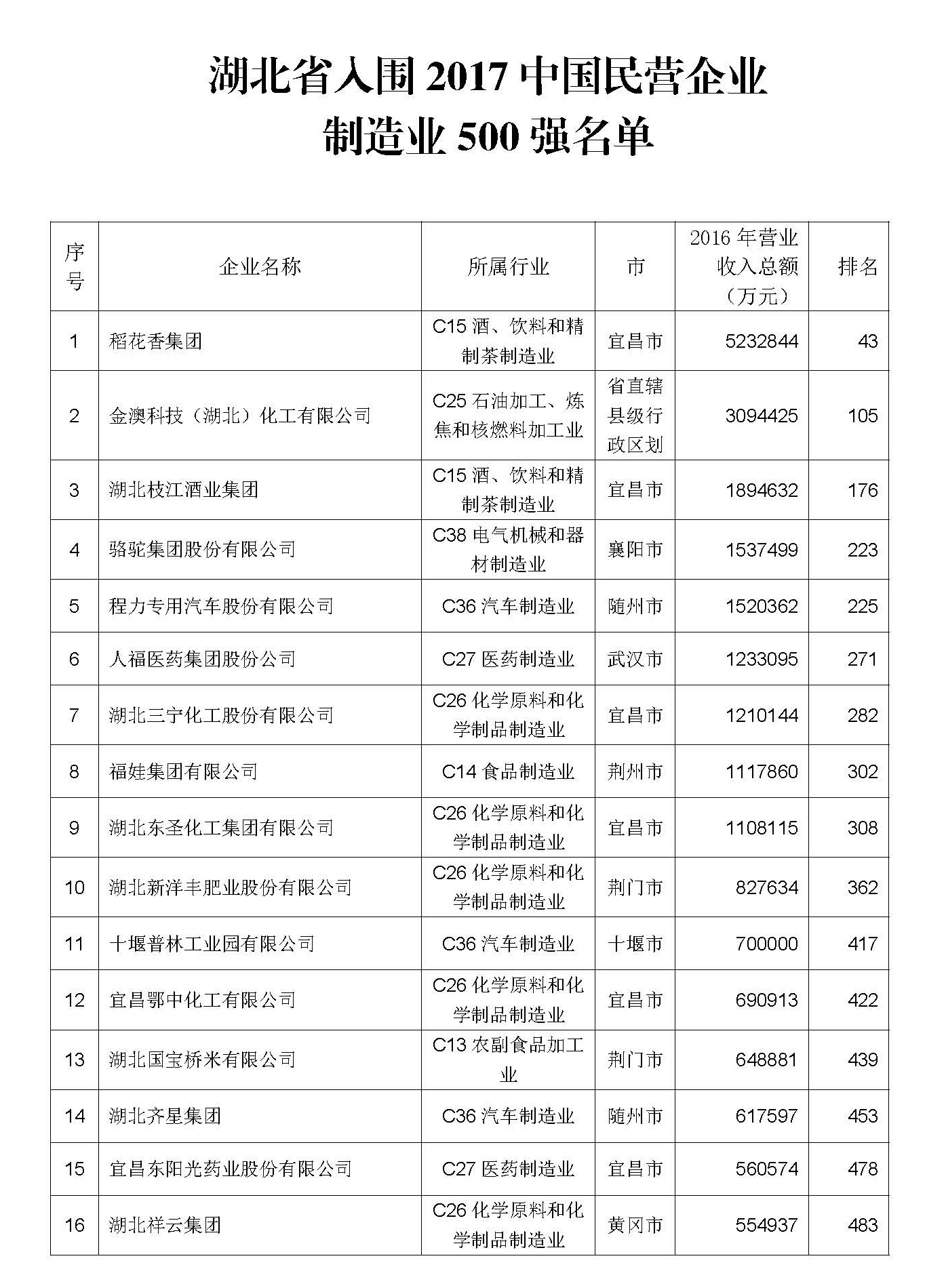 与此同时发布的2017中国民营企业制造业500强、服务业100强榜单中,我省分别有16家、5家企业入围。