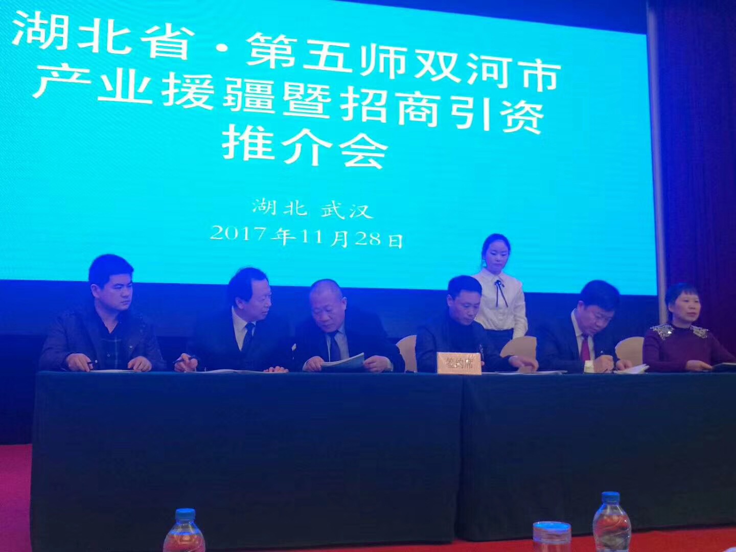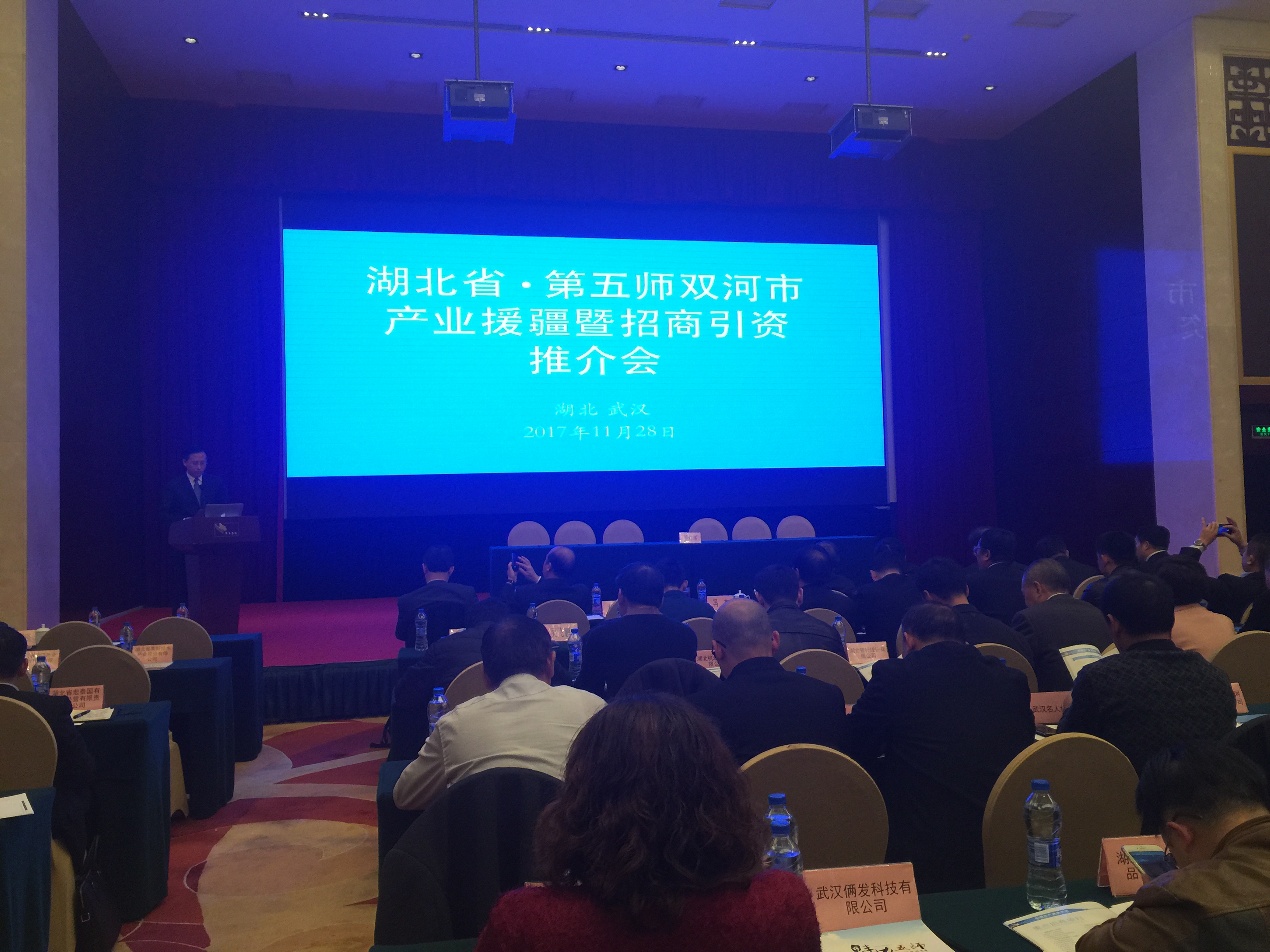 11月28日下午,新疆兵团第五师双河市党政代表团在武汉召开产业援疆暨招商引资推介会。省政府副秘书长吕江文,第五师双河市党委书记、政委冯杰,第五师双河市党委常委、副师长王作敏、杨爱东,湖北省援疆工作前方指挥部党组成员、副总指挥徐明等出席推介会。