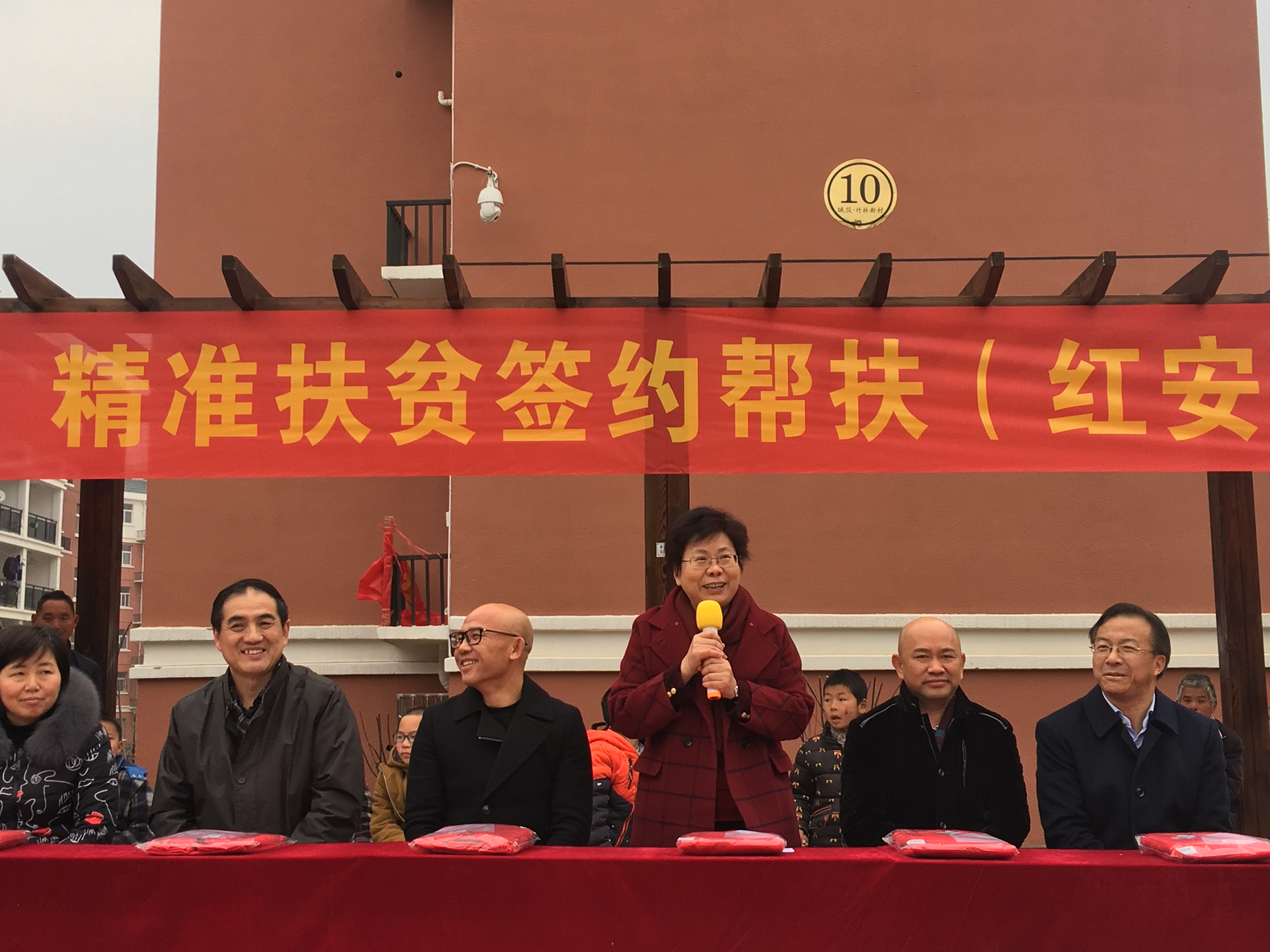 2月9日下午,省工商联在红安县集中搬迁扶贫点(竹林易迁点)举办“千企帮千村”精准扶贫签约帮扶(红安)项目捐赠活动,省工商联主席刘顺妮出席捐赠活动并讲话。