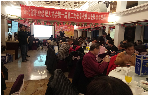 (通讯员 含音)2016年12月16日,湖北省职业经理人协会第一届第二次会员代表大会暨周年庆典在武汉添雅酒店成功举办。国务院国资委职业经理研究中心党委书记兼主任王永利、全国职业经理人考试测评标准化技术委员会副秘书长王新伟、职业经理研究中心培训部主管史宁、中国企业管理能力建设工程办公室主任李安国、湖北省工商业联合会罗绍友副主席、武汉市人民政府国有资产管理委员会企领处李全安、亚太职协常务副会长兼秘书长蔡敬聪、安徽省青年经理人联合会会长张耀峰、湖南职协会长孙朝阳、北京职协会长侯学东、湖南三协会会长陈政峰、长沙职协秘书长陶陶及湖北省职业经理人协会会员、企业家、CEO等200多人参加了“湖北省职业经理人协会第一届第二次会员代表大会暨周年庆典活动”。