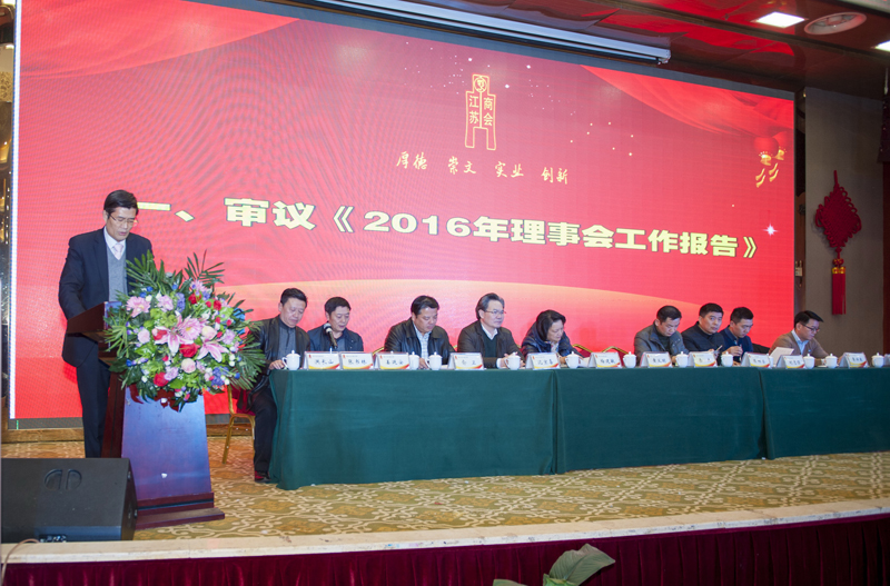 大会由秘书长张书林主持。会长黄义明代表理事会作《湖北省江苏商会2016年理事会工作报告》,提交大会审议:2016年,湖北省江苏商会在湖北省民政厅和工商联的正确领导下,在各界朋友的关心支持下,在商会领导集体和全体同仁的共同努力下,不忘初心,坚持稳中求实,稳中求好,坚持科学管理、服务为上,有继承、有创新,各项工作有了新的进展!展望2017年,承担着新的历史使命,我会将在党的十八大和十八届三中、四中、五中、六中全会及中央经济会议工作精神指导下,展望来年,以“稳中求进,稳中求精”为主基调,打造备受社会尊敬,最具影响力,会员极具归属感与幸福感的一流商会。