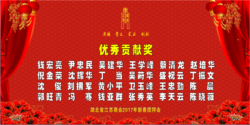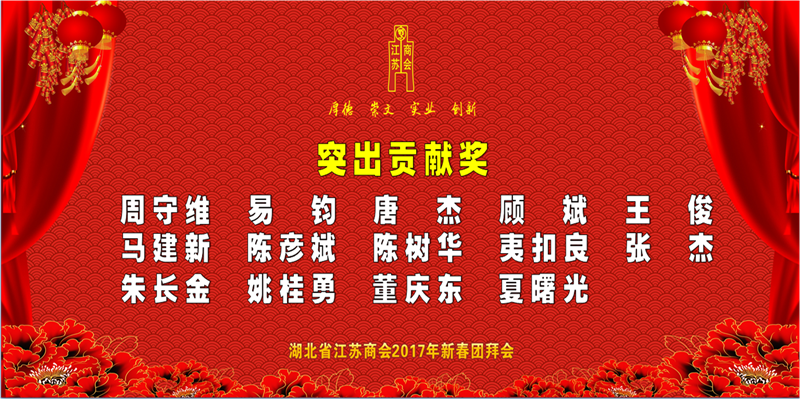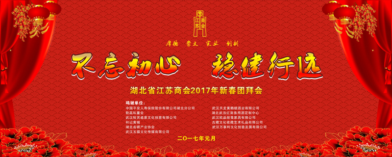 2017年已经到来,我们湖北省江苏商会定将适应新常态、迎接新挑战,抓住新机遇、实现新发展,进一步做好、做强实体经济;并把商会打造成在鄂的“苏商之家”,为实现荆楚苏商的“中国梦”而稳健前行!