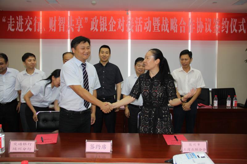 8月9日,由随州市工商联主办,交通银行承办的“走进交行·财智共享”政银企对接活动暨战略合作协议签约仪式在交通银行随州分行举行。活动中,市工商联与交通银行随州分行签订了服务非公有制经济战略合作协议。