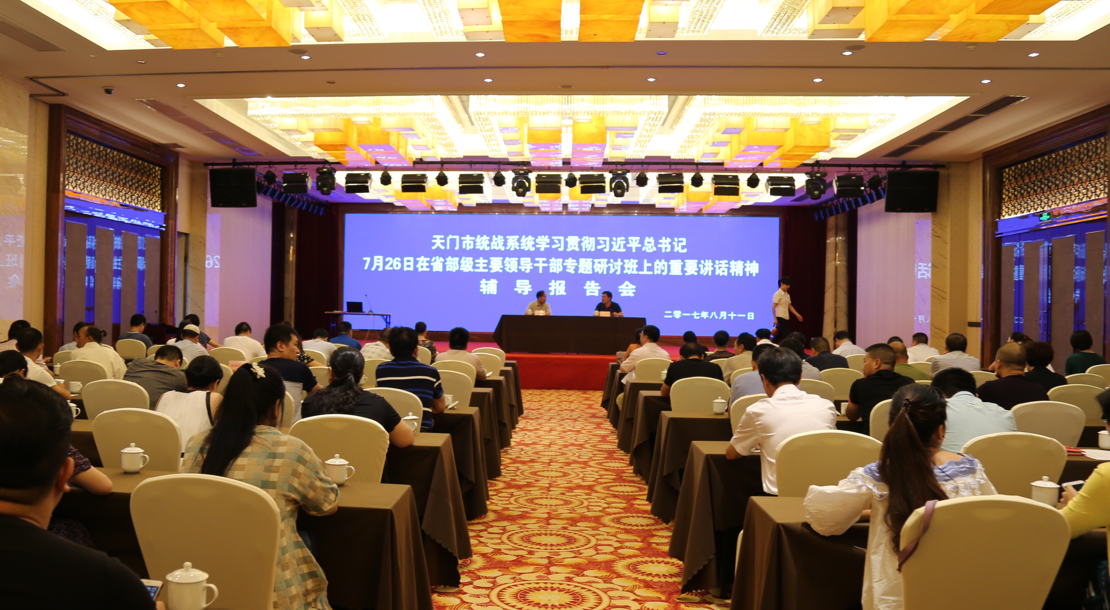 8月11日,天门市工商联组织会员参加全市统战系统学习贯彻习近平总书记7.26在省部级主要领导干部专题研讨班上的重要讲话辅导报告会。市委常委、统战部部长史玉雄主持,市委宣讲团成员、市人大常委会规范性文件备案审查室主任谢钰主讲。市民宗局、民革天门市委会、民建天门市委会、民盟天门市支部委员会以及市党外知识分子联谊会等单位参加了会议。