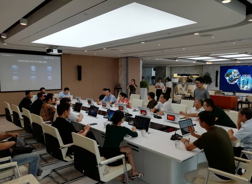 在区招商中心参观了解了武昌人文历史动态长廊、沉浸式CAVE数字展示系统、招商引资互动大屏和无纸化会议操作系统。在座谈研讨中,企业家围绕人才培养和引进、数字化产业发展、创意设计产业提档升级、产融融合等话题展开讨论,各抒己见,踊跃发言,并积极与专家交流互动,气氛热烈、活跃。大家感到非常振奋,对未来发展充满了信心。