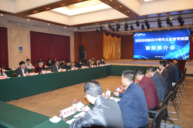 11月5日,深圳市光明新区工商联及企业家一行20人来襄投资考察。襄阳市人民政府副市长张小帆出席投资环境推介会并讲话。市委统战部副部长、市工商联党组书记白继平、市工商联主席蒙世远,襄州区委副书记、区长黄进、副区长王海,市工商联副主席韩江涛、市招商局副局长郭章新、市驻深办副书记、副主任系旭友等陪同考察。