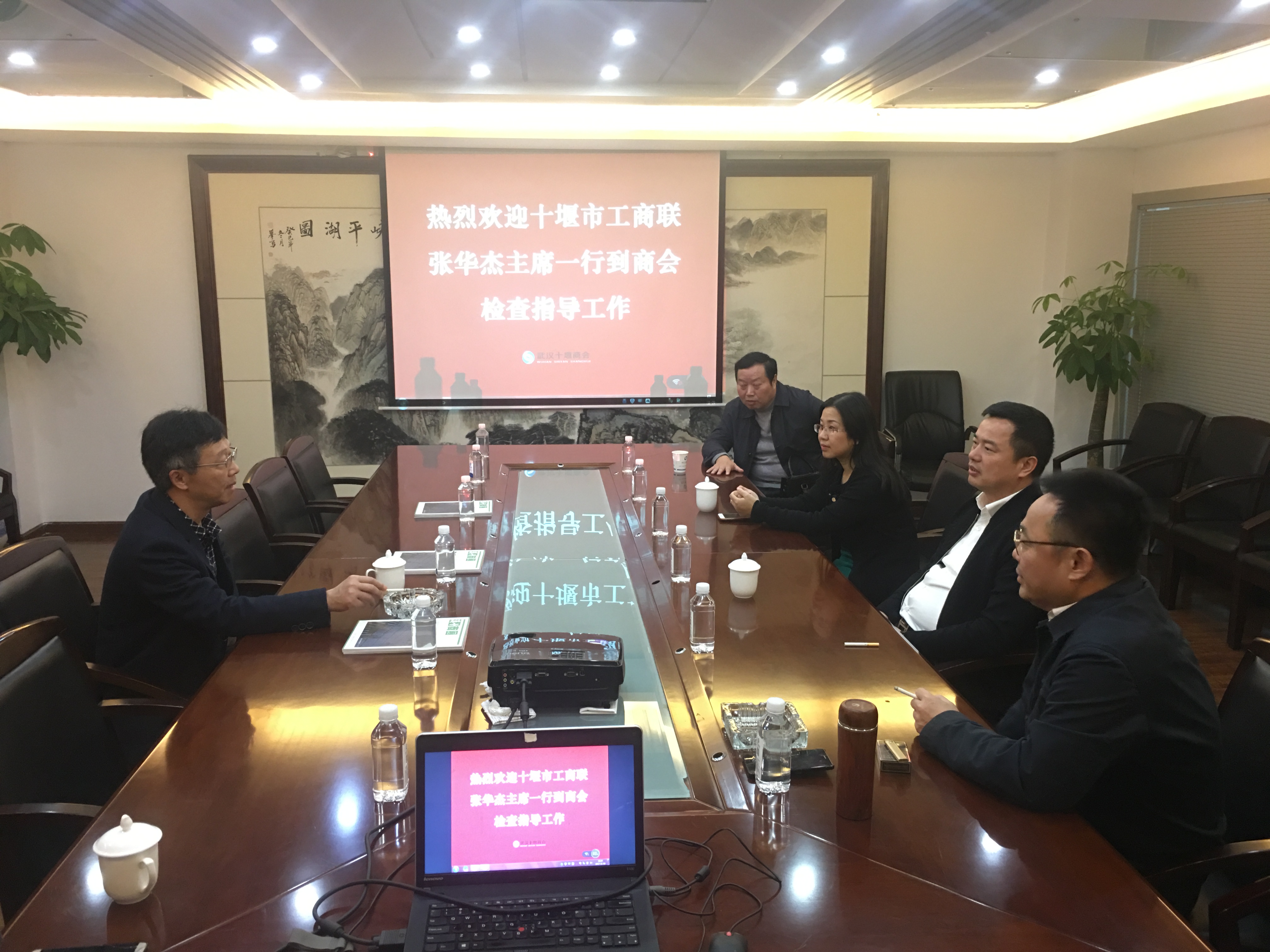 11月8日,十堰市工商联张华杰主席到武汉市十堰商会走访调研,商会会长刘金成、秘书长陈国云以及部分会员代表等陪同。