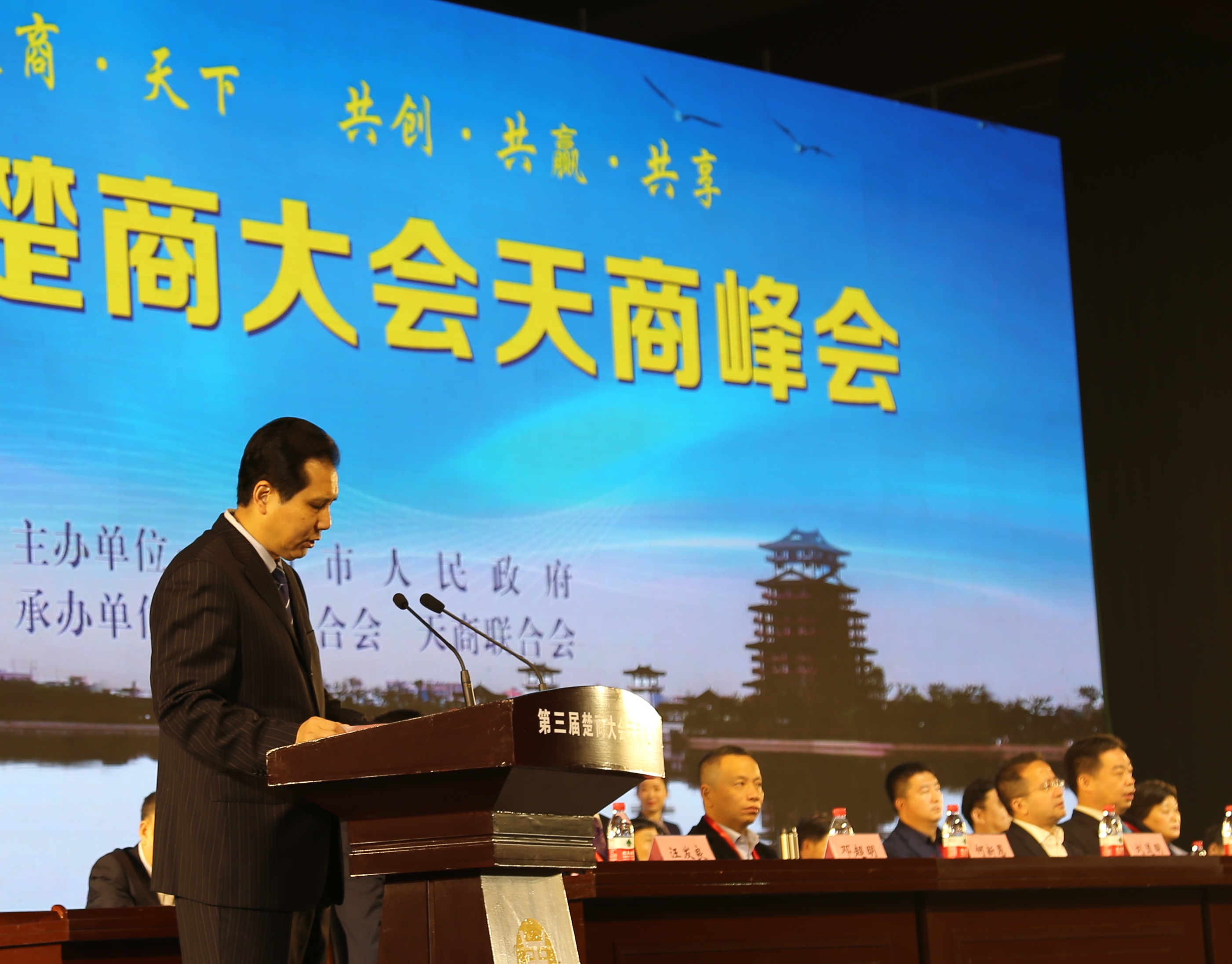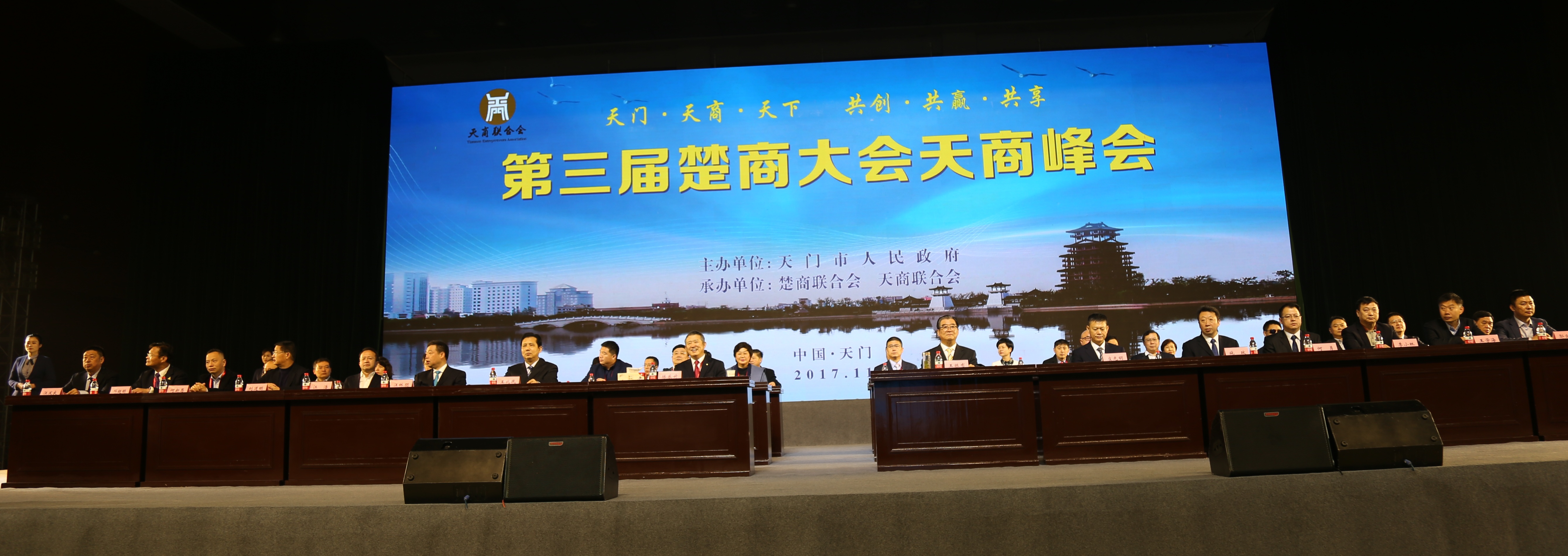 天门通四海,引凤还巢,共圆桑梓中国梦;盛会聚千贤,凝心聚力,同绘竟陵五城图。17日,由天门市人民政府主办,楚商联合会、天商联合会承办的第三届楚商大会天商峰会在天门市体育馆隆重举行。近600名天商代表和嘉宾以“天门·天商·天下 共创·共赢·共享”为主题,共话天商精神,共谋天门发展。