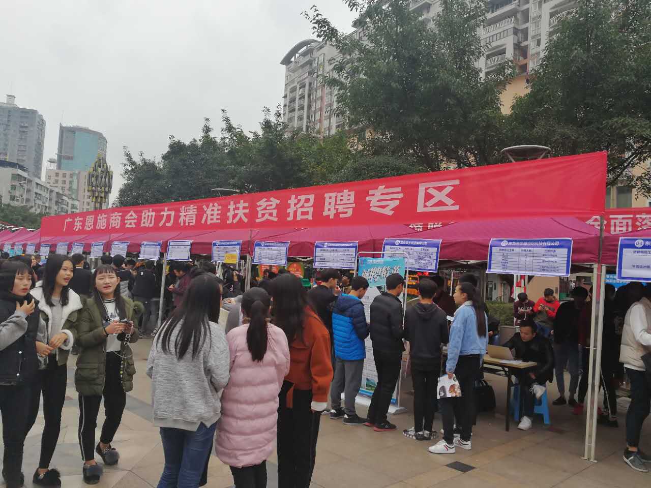 为贯彻落实恩施州决战深度贫困工作会议精神,帮助易地扶贫搬迁户有就业愿望的人员到会员企业就业,增强贫困农户的自我脱贫能力,11月21日,恩施州人力资源和社会保障局、州工商联、广东恩施商会等单位在恩施市桥西广场联合开展助力精准扶贫专场招聘会。恩施州政协副主席、州工商联主席王继刚出席。