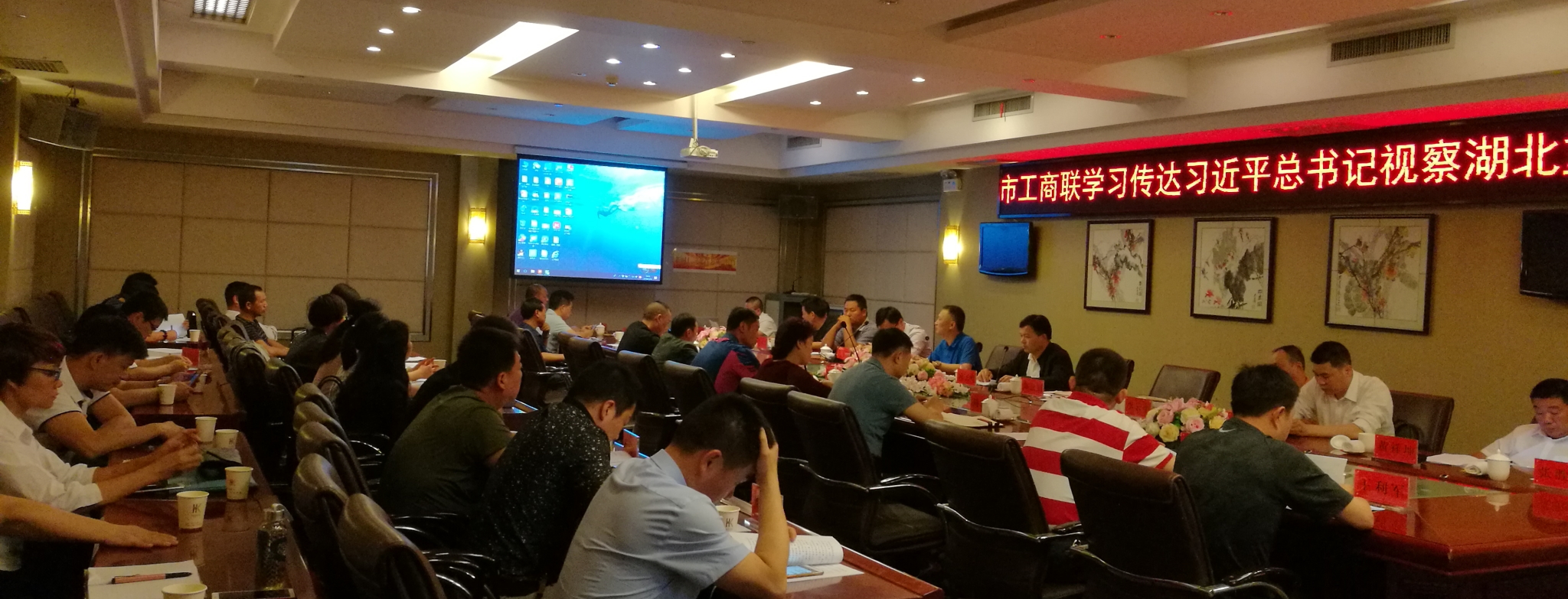 5月24日下午,潜江市工商联组织学习习近平总书记视察湖北重要讲话精神和开展防范化解重大风险业务培训。市委统战部副部长、工商联党组书记、常务副主席关晓斌主持会议,市工商联主席(会长)、副主席、副会长和部分执委代表参加了会议。