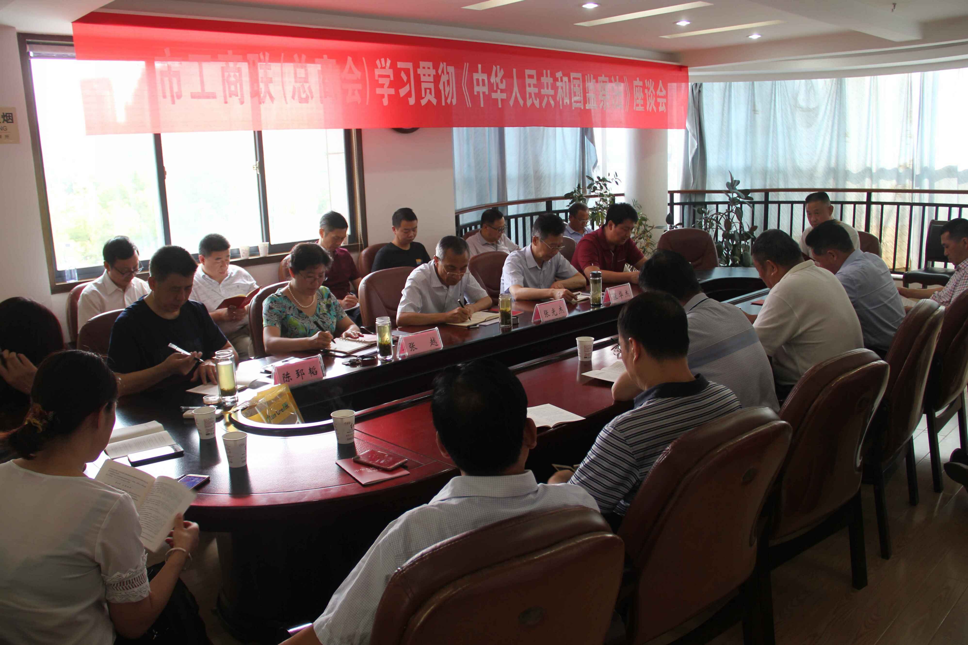 6月8日,十堰市工商联组织全市30多家商会协会会长、秘书长集中学习《中华人民共和国监察法》,市工商联全体干部参加学习。